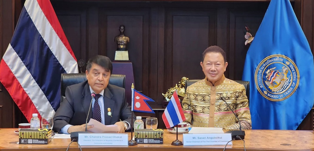 काठमाण्डौ । नेपाल उद्योग वाणिज्य महासंघ र थाइ चेम्बर अफ कमर्स एण्ड वोर्ड अफ ट्रेडबीच संयुक्त वाणिज्य परिषद् गठन गर्ने समझदारी भएको छ । थाइल्याण्डको राजधानी बैंकक भ्रमणमा रहेको नेपाल उद्योग वाणिज्य महासंघको टोलीसँग थाइ चेम्बर अफ कमर्स एण्ड बोर्ड अफ ट्रेडले आफ्नै कार्यालयमा द्विपक्षीय वार्ता गर्दै संयुक्त वाणिज्य परिषद् गठन समझदारी गरेको हो ।
