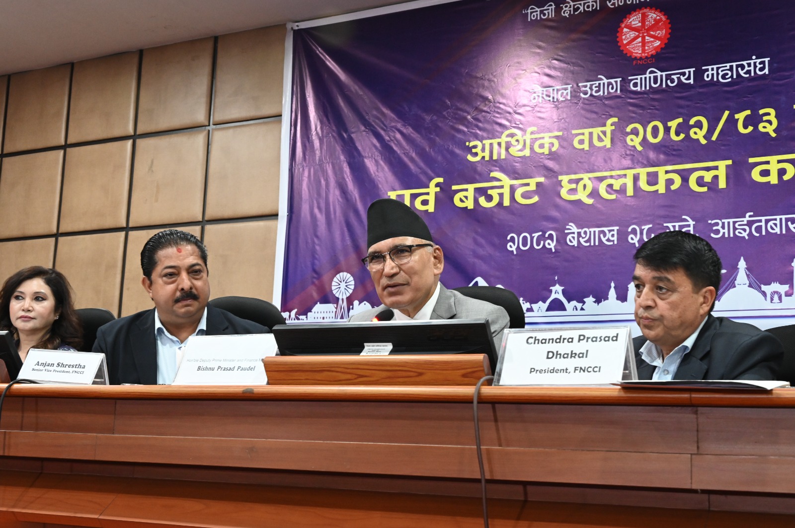 अध्यक्ष ढकालले साधारण खर्च घटाइ बिकास खर्च बढाउने र सर्वसाधारणको क्रयशक्ति एवं उद्यमीको उत्पादन तथा उत्पादकत्व बढाउने कार्यक्रम ल्याउनुपर्ने बताएका छन् ।